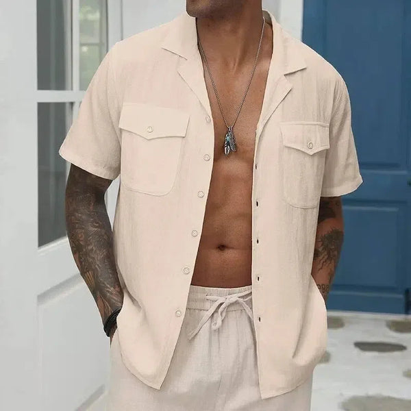 Ανδρικό περιστασιακό χαλαρό πουκάμισο τσέπης αμιγούς χρώματος