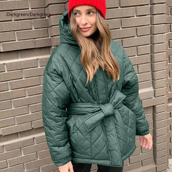 Βαμβακερό μπουφάν με κουκούλα Slim-fit Lace Up Lapel Μακρύ μανίκι
