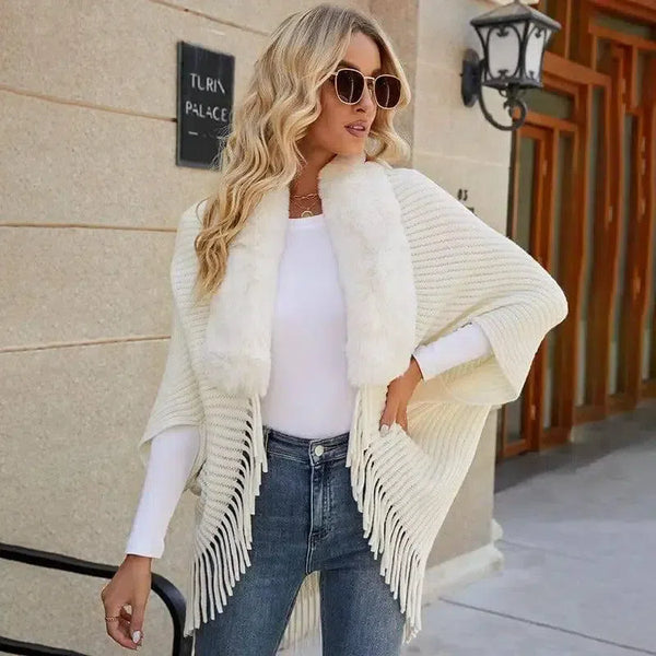 Περιγραφή προϊόντος: Γυναικεία γούνα γιακάς φούντα σάλι πλεκτό