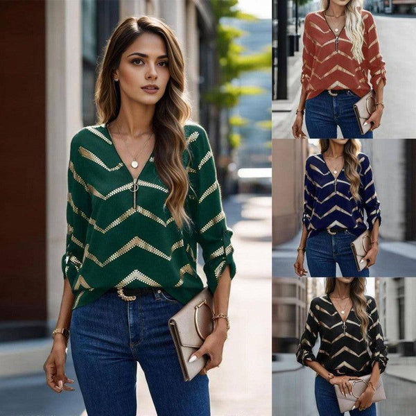 Γυναικείο Casual μακρυμάνικο πουκάμισο με λωρίδα με V-λαιμό