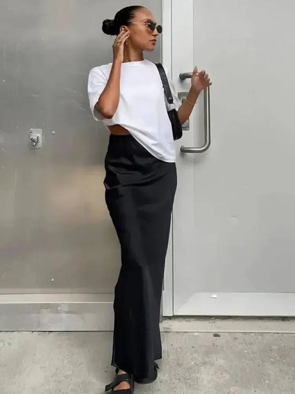 Γυναικεία μαύρη κομψή σατέν μόδα Slim φούστες τέσσερις εποχές