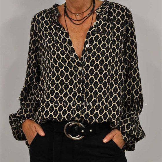Γυναικών άνοιξη V-λαιμός μακρύ μανίκι μόδας εκτύπωση T-shirt Shirt Shirt