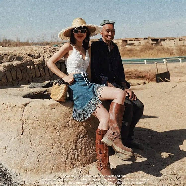 Γυναικεία ρετρό ακανόνιστη φούντα τζιν φούστα