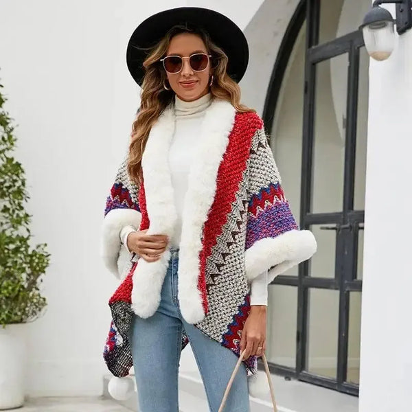 Γυναικεία γούνα κολάρο Inverness ριγέ Ethnic στυλ