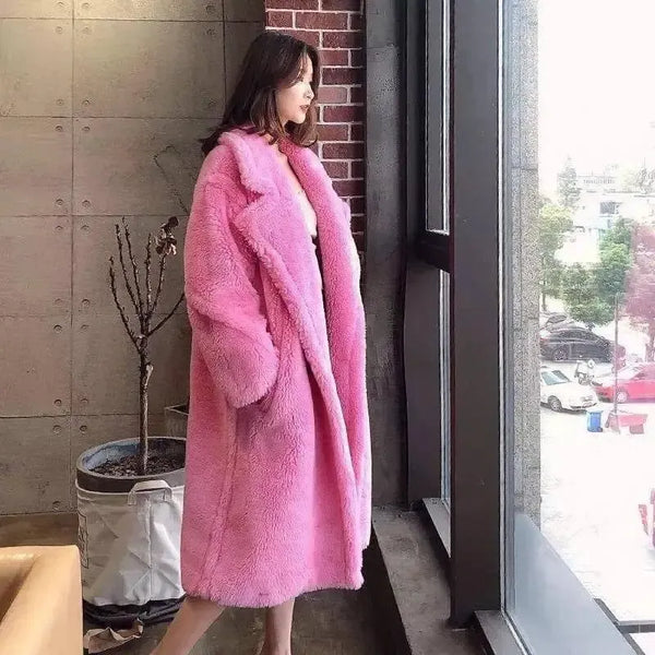 Γυναικείο μακρύ παλτό από γούνα και μαλλί αρνιού