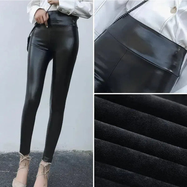 Δερμάτινο παντελόνι γυναικών παχύ μεγάλο μέγεθος υψηλή μέση PU δέρμα