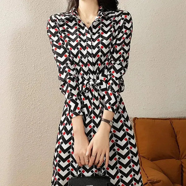 Τυπωμένο φόρεμα με μακρύ μανίκι Γυναικεία μέση