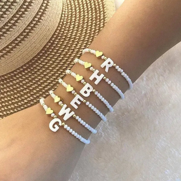 26 Γράμματα Λευκό κέλυφος χάντρες βραχιόλι γυναίκες μέταλλο αγάπη σχεδιασμό βραχιόλι κοσμήματα κοσμήματα