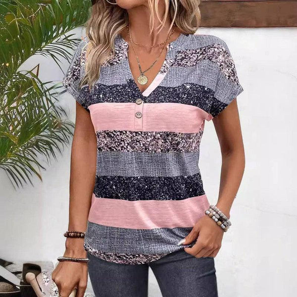 Ευρωπαϊκό και Αμερικάνικο καλοκαιρινό κοντομάνικο ριγέ V-λαιμόκοψη 3D