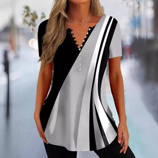 Καλοκαιρινό Γυναικείο Κουμπί Γεωμετρικό τύπωμα Casual Top