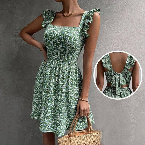 Καλοκαιρινό τετράγωνο ντεκολτέ με βολάν αμάνικο φόρεμα με παπιγιόν