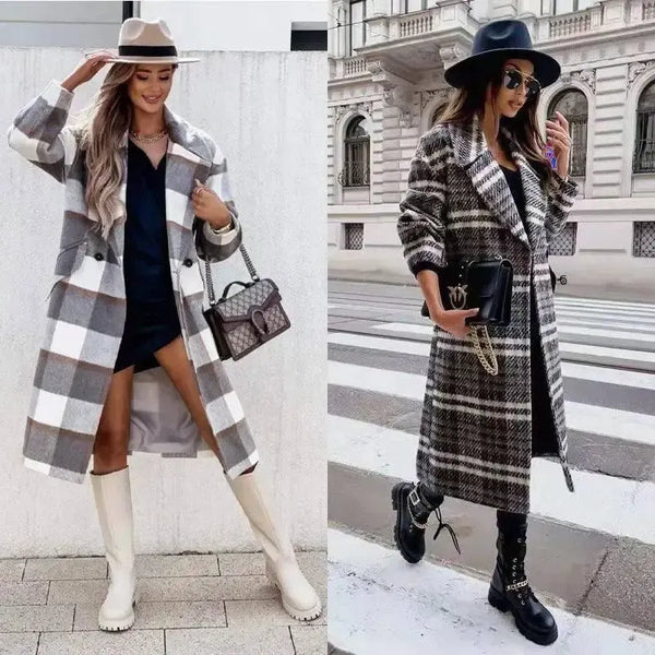Καρό μεσαίου μήκους παλτό Lapel Tie μάλλινο παλτό
