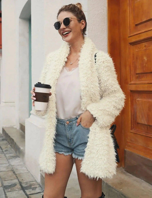 Μακρυμάνικο σακάκι από γούνα faux γούνας μεσαίου μήκους