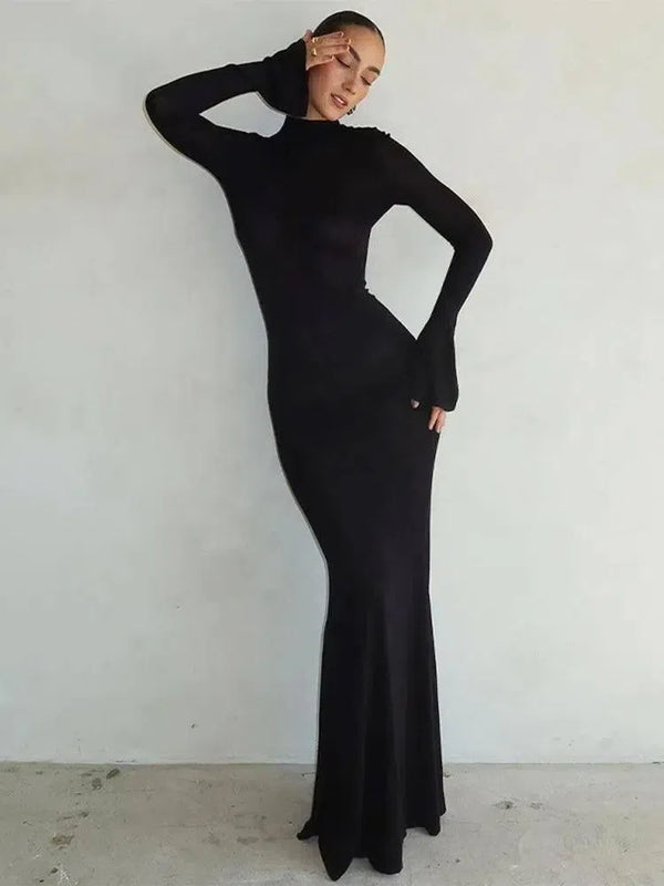Μασίφ εξώπλατο φόρεμα Maxi - Βραδινό μανίκι τρομπέτας