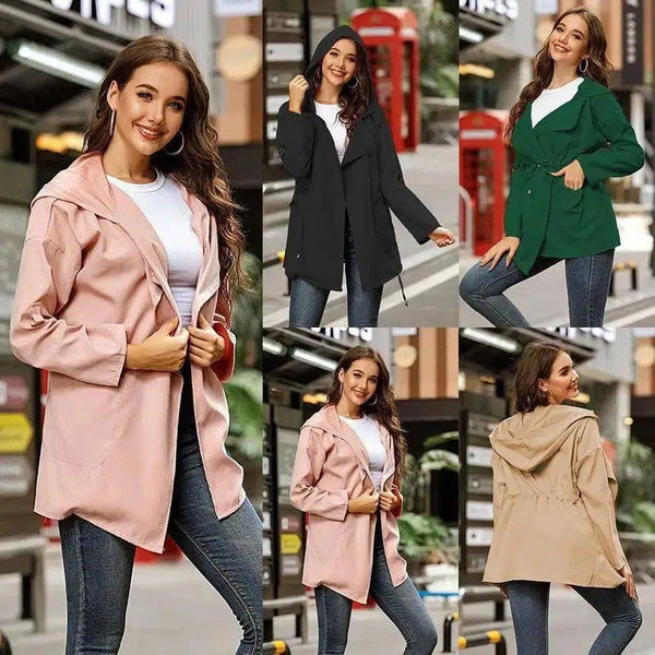 Μονόχρωμη καμπαρντίνα με κουκούλα μεσαίου μήκους