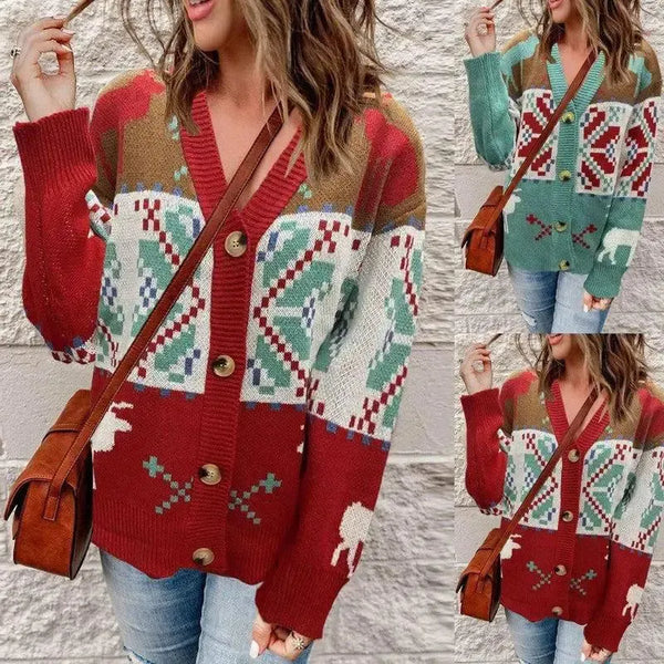 Πλεκτή ζακέτα Χριστουγεννιάτικο πουλόβερ παλτό