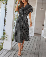 Πουά εκτύπωσης πουκάμισο γιακά μεγάλο φόρεμα Swing