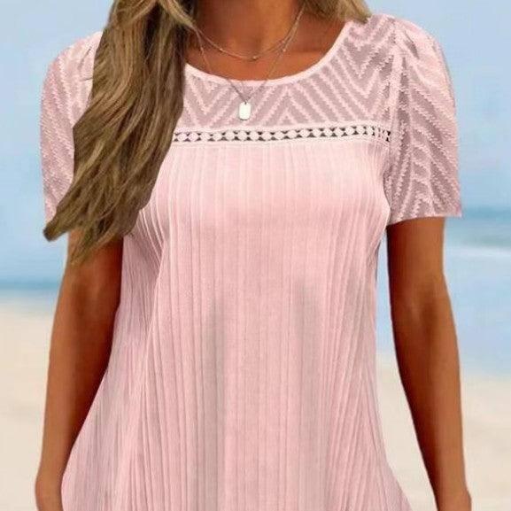 Πουλόβερ με στρογγυλή λαιμόκοψη με δαντέλα με κοντομάνικο μπλουζάκι