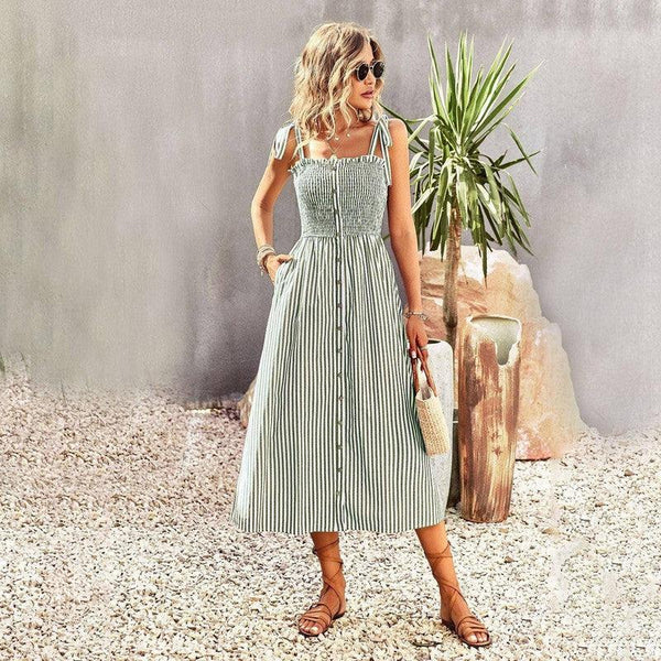 - Στυλ: Κομψό ριγέ φόρεμα για γυναίκες