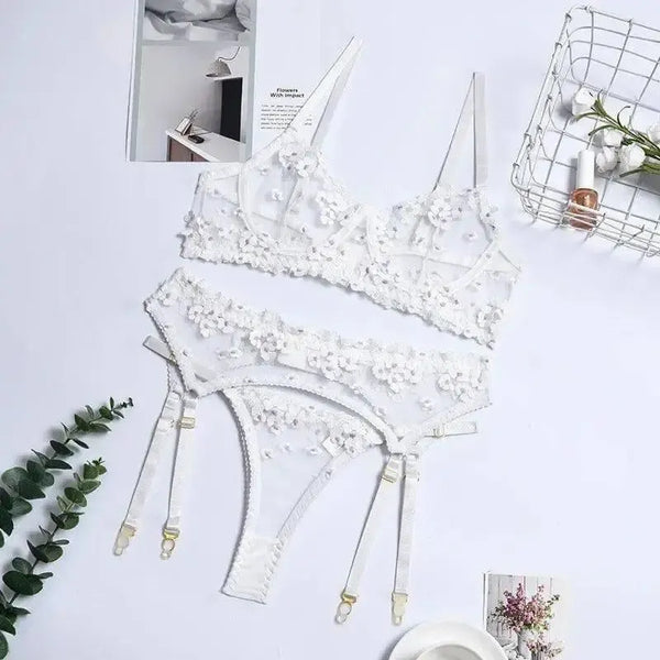Εσώρουχα κυρίες τριών τεμαχίων κεντημένο δαχτυλίδι χάλυβα