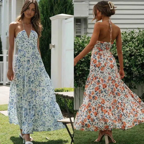 Σιφόν V-λαιμός Αμάνικο μακρύ φόρεμα Patchwork