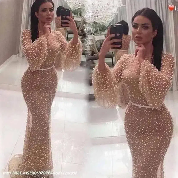 Λεπτό μακρύ διαφανές φόρεμα από τούλι με μακριά μανίκια