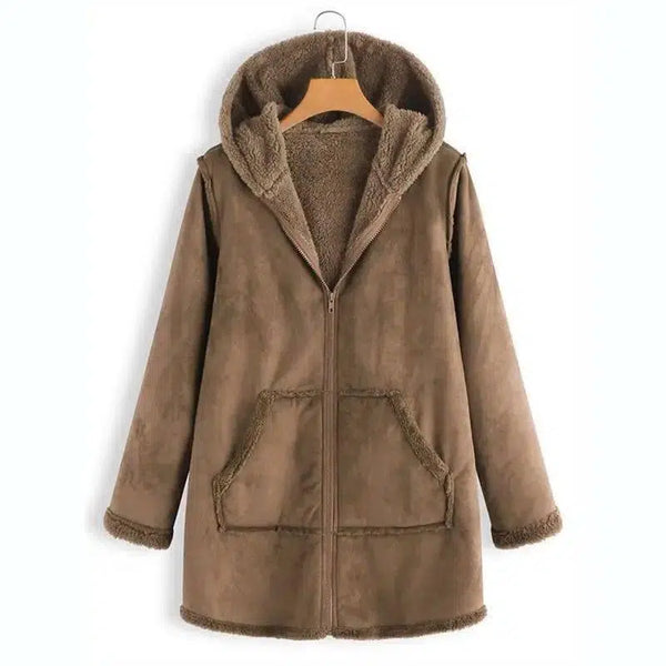 Χειμερινή τσέπη ζεστό βελούδινο παλτό με κουκούλα