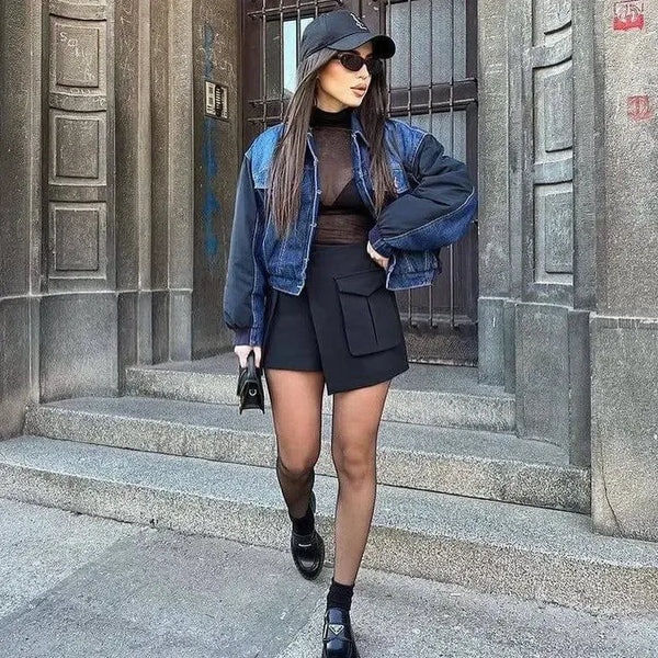 Γυναικείο Casual Patchwork Denim Pilot Jacket Coat
