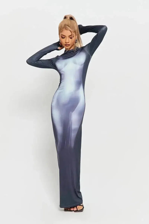 3D σώμα εκτύπωσης Super μακρύ μανίκι σώμα ρόμπα φόρεμα κόμμα