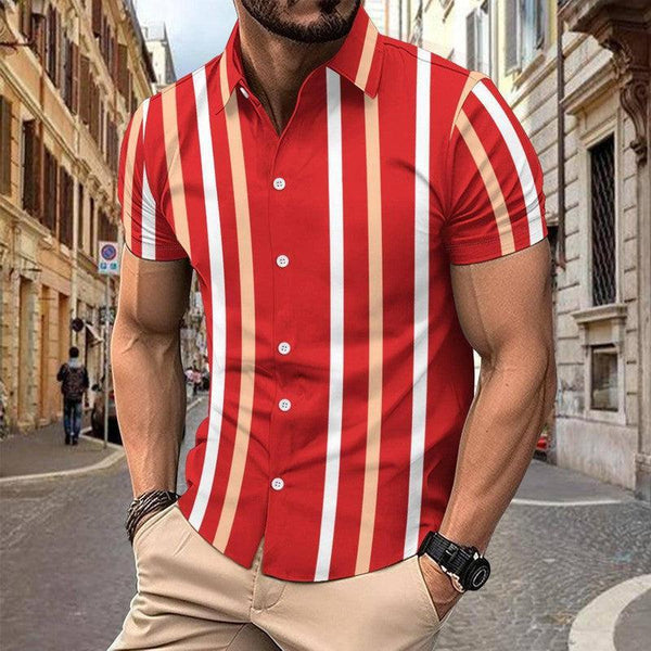 Casual ριγέ εμπριμέ κοντομάνικο πουκάμισο καλοκαιρινό πέτο Λαδί / 3XL