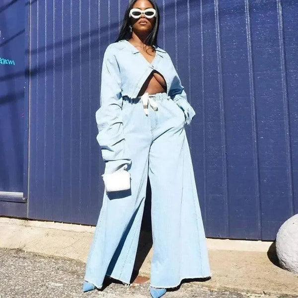 Casual χαλαρό τζιν κοστούμι δύο τεμαχίων γυναικεία ρούχα