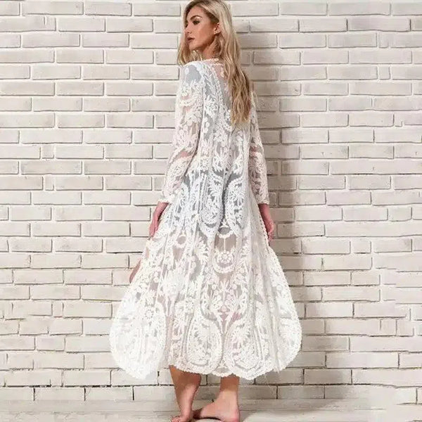 Μακρυμάνικο φόρεμα Midi με δαντέλα για γυναίκες