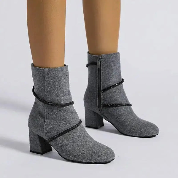 Chunky Mid Heel μπότες με στρας αλυσίδα Σχεδιασμός παπούτσια για