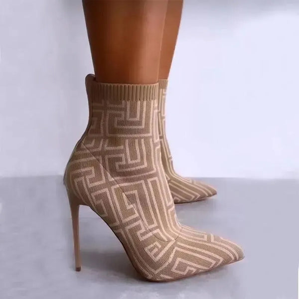 Μόδα Μπότες αστραγάλου Γυναίκες Μπότες με ψηλό τακούνι Μπότες Pointed Toe