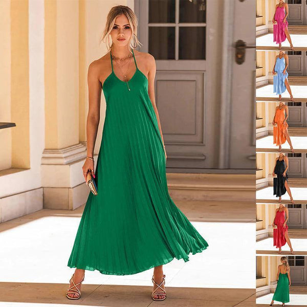 Μόδα A-line πλισέ μακρύ φόρεμα με αναρτήρες Καλοκαίρι Casual