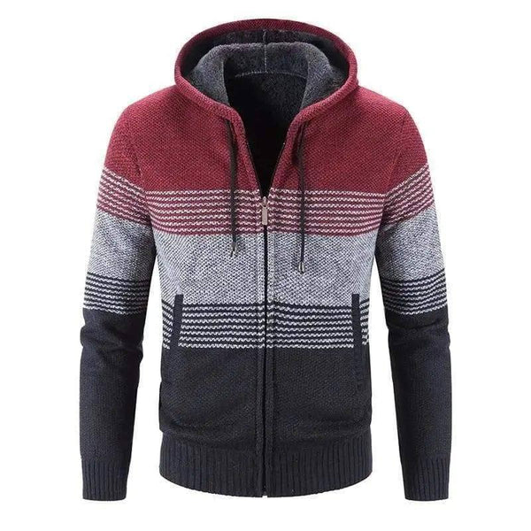 Άνδρες με κουκούλα ριγέ παλτό ζακέτα αρσενικό παχύ φερμουάρ μαλλί
