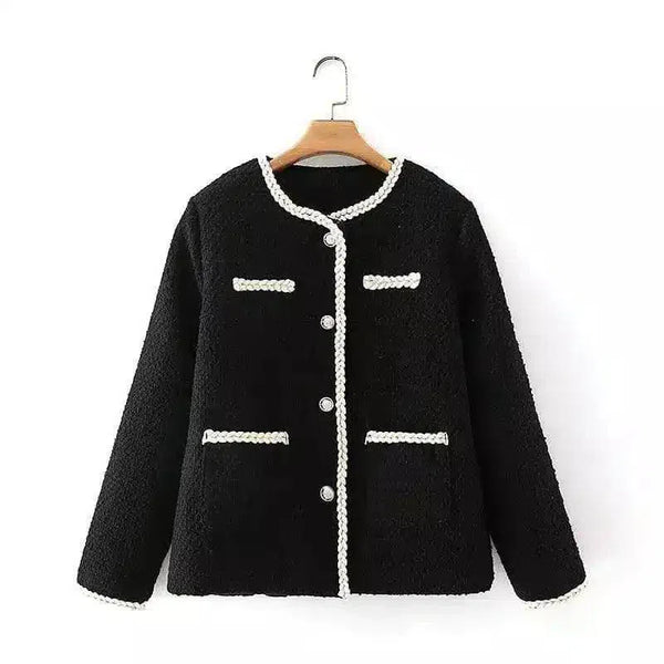 Γυναικείο τουίντ σακάκι με μαργαριταρένια κουμπιά
