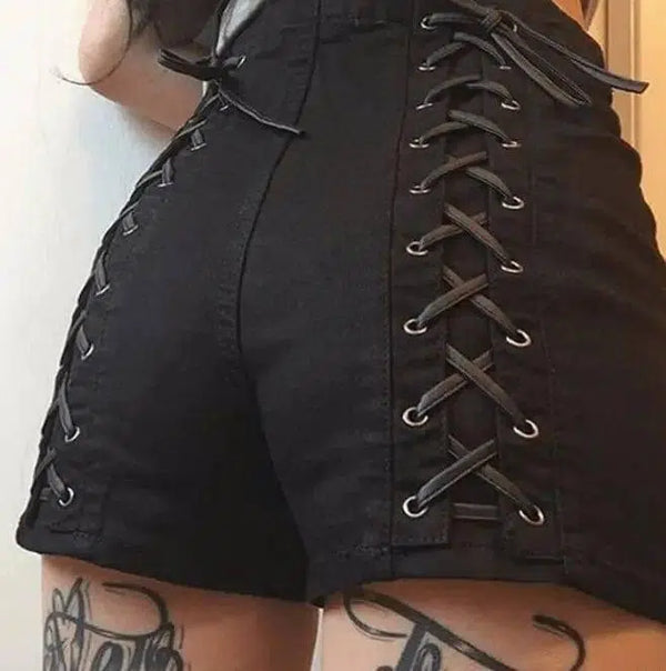 Περιγραφή προϊόντος: Γυναικεία στερεά σορτς Criss Cross Bandage REGULAR υψηλής μέσης