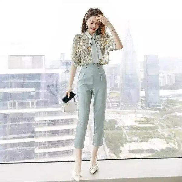 Γυναικεία κομψή μπλούζα με λαιμόκοψη & κρουαζέ παντελόνι