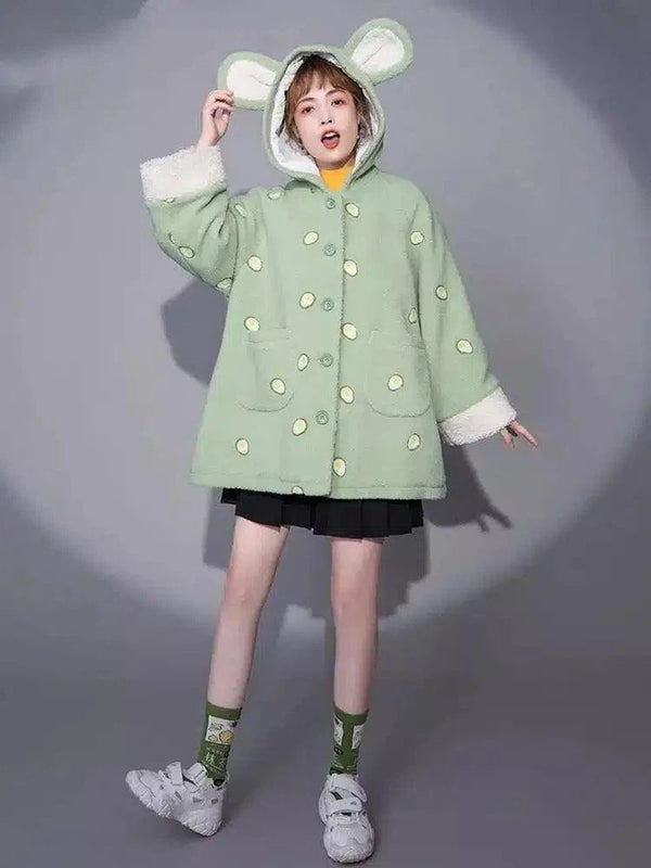 Τυπωμένο μάλλινο παλτό με κουκούλα από αρνί με καρτούν