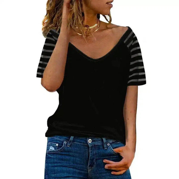 Γυναικείο μπλουζάκι με ριγέ μανίκι V-Neck T-Shirt