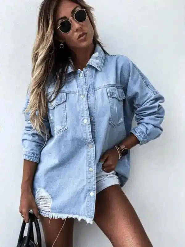 Γυναικείο casual τζιν πουκάμισο με τσέπες