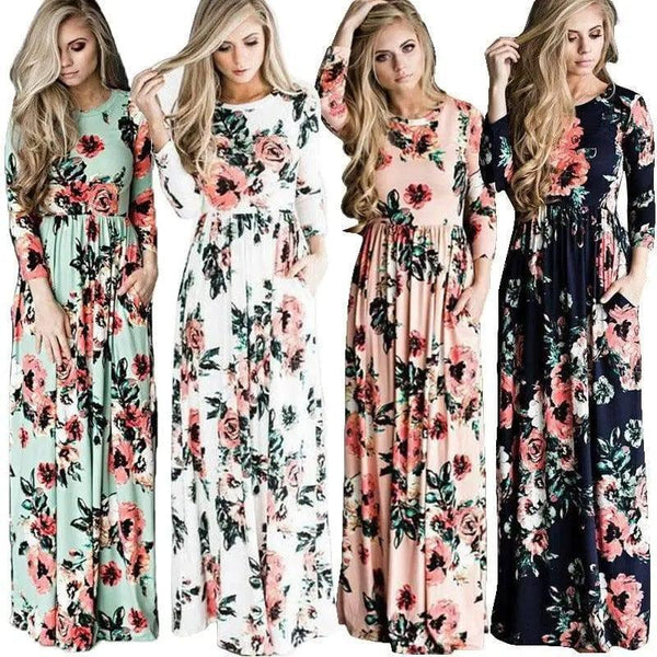 Μακρυμάνικο τυπωμένο φλοράλ φόρεμα