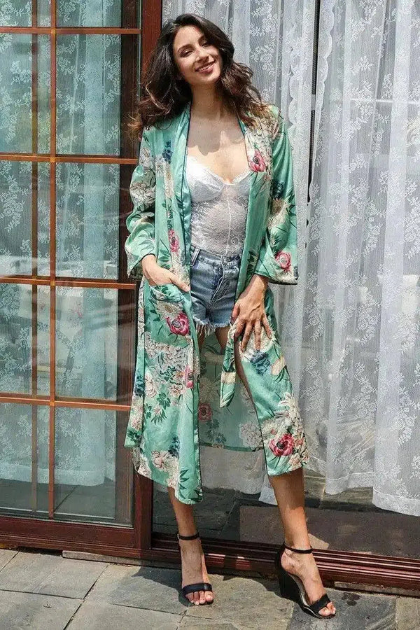 Floral Kimono-Style Long Cover-Up