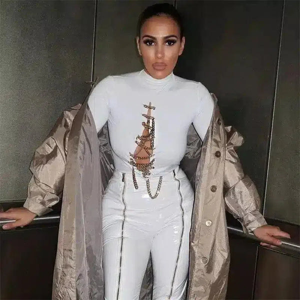 Λευκό ζιβάγκο τοπ με λεπτομέρεια αλυσίδας - Τολμηρή εμφάνιση μόδας