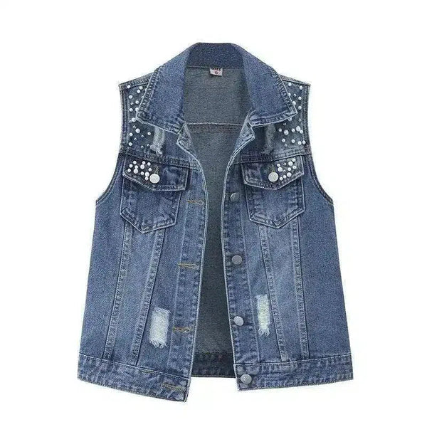 Studded τζιν γιλέκο μπουφάν αμάνικο