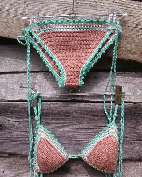 Μπικίνι μαγιό πλεκτό υφαντό κοστούμι split μαγιό