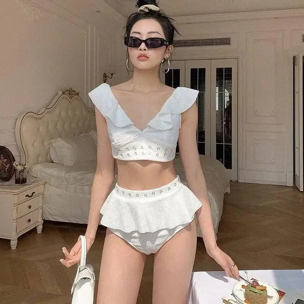 Μπικίνι με βολάν Συγκεντρωμένο χωρίς πλάτη Υψηλή μέση Σπλιτ