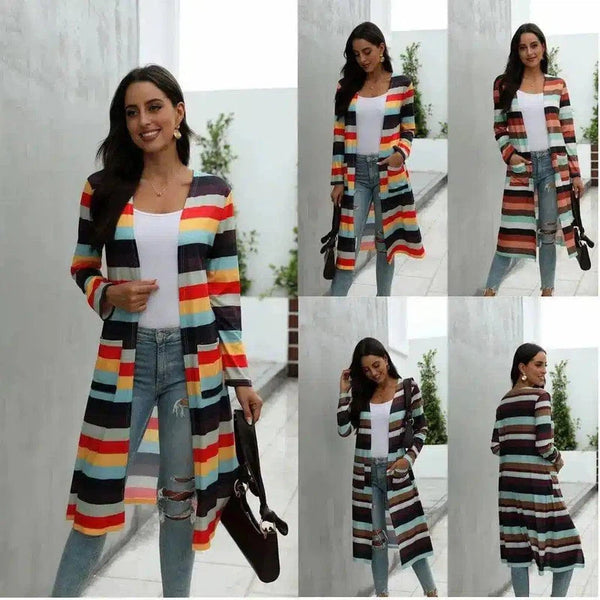 Ριγέ μακριά ζακέτα πουλόβερ για γυναίκες
