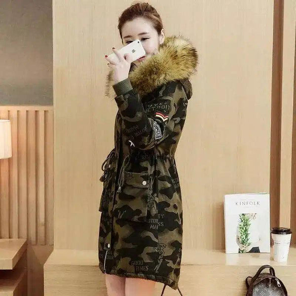 Παχύτερο βαμβακερό παραγεμισμένο σακάκι, γυναικείο χειμερινό κολάρο μαλλιών